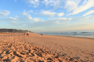 Am nächsten Tag sehen wir endlich wieder das Meer! Der Radweg ist wunderschön ausgebaut und führt uns durch schattige Pinienwälder, vorbei an einigen Golf-Resorts und zahlreichen verschlossenen Ferienvillen. Das Blau des Atlantiks begleitet uns dabei immer in Sichtweite – ein herrliches Gefühl nach den langen Umwegen durchs Landesinnere.
