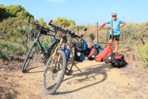 In Zahara de los Atunes schlagen wir zum vorerst letzten Mal auf europäischem Boden unser Zelt auf. Unser Ziel und Fährhafen, Tarifa, ist nur noch 30 Kilometer entfernt. Nur 30? Die haben wir uns hart erkämpft: Extremer Berganstieg, weiter über Stock und Stein, bis wir schließlich die Räder über einen Zaun hieven müssen.