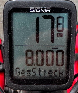 Nach 45 Kilometern erreichten wir schließlich die Marke von 8.000 Kilometern. Ein großartiges Gefühl – und immer noch kein Platten. Jedes Mal frage ich mich, ob ich das überhaupt erwähnen sollte, schließlich möchte ich das Schicksal nicht herausfordern.