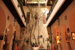 Nach zwei intensiven Tagen in Fès zieht es uns weiter nach Meknès, wo wir in einem wunderschönen Riad mitten in der Medina unterkommen. Der Innenhof ist größer, grün bepflanzt und erfüllt vom Zwitschern der Vögel – eine kleine Oase der Ruhe. Auch unser Zimmer ist geräumiger, die Treppen breiter, das Licht weicher. Im Vergleich zu Fès wirkt die Medina von Meknès ruhiger, entspannter, fast gelassen. Am zweiten Tag – einem Freitag – bleiben die meisten Geschäfte geschlossen, was die friedliche Atmosphäre noch verstärkt. Am Abend genießen wir ein herrliches marokkanisches Essen in einem traditionellen Restaurant – so gemütlich, dass man das Gefühl hat, im Wohnzimmer des Besitzers zu sitzen.