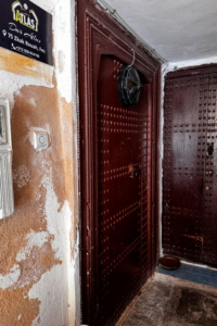 Für den nächsten Tag haben wir eine Führung durch die Medina gebucht. Unser Guide erweist sich als großartige Quelle für Geschichten und Details. So lernen wir etwa, dass viele Türen zwei Klopfer haben – mit unterschiedlichem Klang und auf unterschiedlicher Höhe: der untere, kleinere für Familienangehörige, der obere für Fremde. Beim vertrauten Klang des unteren können die Frauen des Hauses die Tür ohne Verschleierung öffnen. Auch die Postzustellung in der Medina folgt einem eigenen System: Briefe und Pakete werden nicht direkt an die Empfänger geliefert, sondern an einen beauftragten Nachbarn, der sich um die Verteilung kümmert.