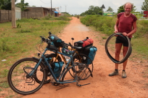 Einen kleinen Wermutstropfen gab es allerdings: Die verflixten dreizehnten Tausendkilometer haben uns bei 12.045 Kilometern den ersten Platten der gesamten Reise beschert. Na ja, irgendwann musste es ja mal passieren.