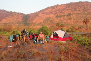 Von Boké über Boffa bis nach Conakry übernachten wir zwischendurch wieder in der Natur. Am Abend entdecken wir eine alte, nicht mehr befahrene Straße, die sich bergan schlängelt und irgendwann einfach im Nichts endet. Ein perfekter Platz fürs Zelt dachten wir. Was wir nicht bedacht haben: der dunkle Asphalt speichert die Wärme und zwar gründlich. Tagsüber von der Sonne aufgeheizt, gibt der Boden am Abend diese zuverlässig wieder ab. Statt der ersehnten nächtlichen Abkühlung liegen wir plötzlich auf einer Art Fußbodenheizung ohne Ausschaltknopf und schwitzen, schwitzen, schwitzen …
