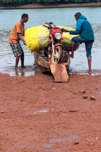 Die Einreise nach Guinea erfolgt, wie schon zuvor, per Flussüberquerung. Klingt romantisch, ist es aber nur bedingt: Das Boot ist sehr schmal, schwankt bedenklich und muss ständig von einfließendem Wasser befreit werden. Während wir uns fragen, ob das hier wirklich die beste Idee war, wird fleißig geschöpft.