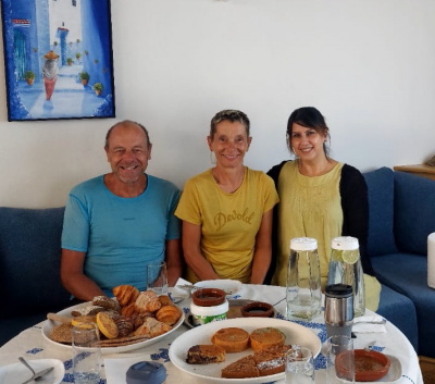 Am nächsten Morgen legten wir auf unserem Weg Richtung Aglou noch einen kurzen Zwischenstopp bei Fatima und Mohamed zuhause ein. In ihrer Garage entstand dann auch das folgende Foto, natürlich zusammen mit dem berühmten Auto mit Karlsruher Kennzeichen.