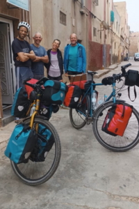 In Tan-Tan landen wir bei Aziz im Guesthouse – eine coole Socke. Wir treffen zwei weitere Radfahrer; Matthias erkennt am Dialekt sofort einen der beiden als Heilbronner. Von nun an begegnen wir immer häufiger Gleichgesinnten. Selten fahren wir gemeinsam, aber abends sitzt man zusammen: essen, denselben Campingplatz oder dasselbe Hotel teilen. Die Gespräche mit Marc, Eric, Maurice, Keno, Stephen und Julian drehen sich nicht nur ums Radfahren und sind eine wunderbare Abwechslung.