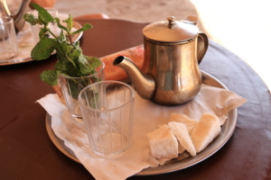 Tags darauf führt uns eine Straße über einen kleinen Gebirgszug nach Guelmim, einer ehemaligen Karawanenstadt. Die Aussicht über die Berglandschaften ist herrlich. In einem kleinen Dorf genießen wir einen marokkanischen Tee. Nach rund 60 Kilometern öffnet sich eine weite, kahle Ebene. Die Schwelle zur Sahara ist spürbar. Und dann, im Stadtkern, plötzlich pulsierendes Leben – kaum zu fassen.