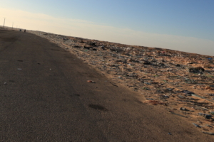 Bir Gandouz, die letzte Stadt vor Mauretanien: Wir hoffen auf ein süßes Verwöhnteilchen. Stattdessen: Einzelne Häuserzeilen, Sand, Bauschutt, Müll – eine Stadt im Aufbau. Kein Luxus. Ich schäme mich meiner Erwartung.